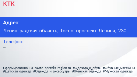 КТК по адресу Ленинградская область, Тосно, проспект Ленина, 230 в дальнейшем Организация, размещена в следующих категориях: