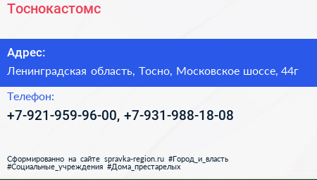 Тоснокастомс по адресу Ленинградская область, Тосно, Московское шоссе, 44г в дальнейшем Организация, размещена в следующих категориях: