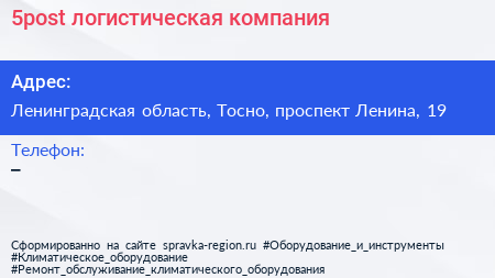 5post, логистическая компания по адресу Ленинградская область, Тосно, проспект Ленина, 19 в дальнейшем Организация, размещена в следующих категориях: