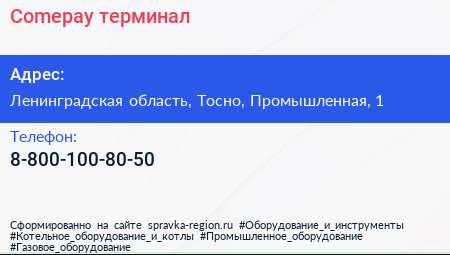 Comepay, терминал по адресу Ленинградская область, Тосно, Промышленная, 1 в дальнейшем Организация, размещена в следующих категориях:
