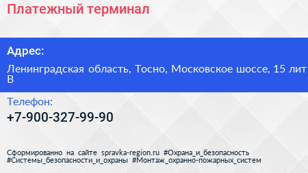 Платежный терминал по адресу Ленинградская область, Тосно, Московское шоссе, 15 лит В в дальнейшем Организация, размещена в следующих категориях:
