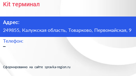 Kit, терминал по адресу 249855, Калужская область, Товарково, Первомайская, 9 в дальнейшем Организация, размещена в следующих категориях: