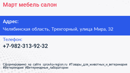 Март-мебель, салон по адресу Челябинская область, Трехгорный, улица Мира, 32 в дальнейшем Организация, размещена в следующих категориях: