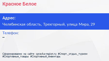 Красное & Белое по адресу Челябинская область, Трехгорный, улица Мира, 29 в дальнейшем Организация, размещена в следующих категориях: