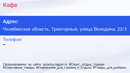 Кафе по адресу Челябинская область, Трехгорный, улица Володина, 22/1 в дальнейшем Организация, размещена в следующих категориях: