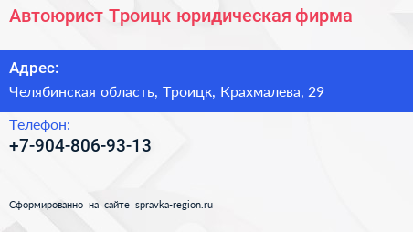 Автоюрист Троицк, юридическая фирма по адресу Челябинская область, Троицк, Крахмалева, 29 в дальнейшем Организация, размещена в следующих категориях: