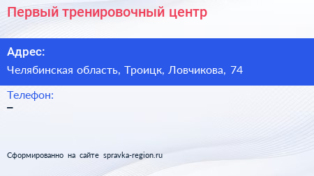 Первый тренировочный центр по адресу Челябинская область, Троицк, Ловчикова, 74 в дальнейшем Организация, размещена в следующих категориях: