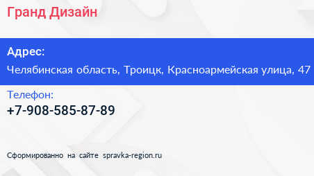 Гранд-Дизайн по адресу Челябинская область, Троицк, Красноармейская улица, 47 в дальнейшем Организация, размещена в следующих категориях: