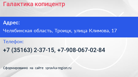 Галактика, копицентр по адресу Челябинская область, Троицк, улица Климова, 17 в дальнейшем Организация, размещена в следующих категориях: