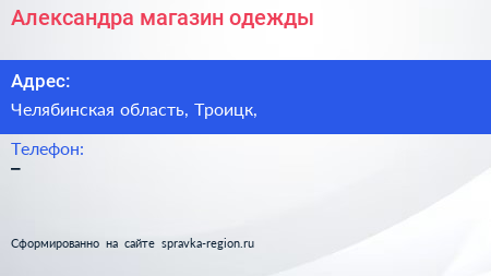 Александра, магазин одежды по адресу Челябинская область, Троицк, в дальнейшем Организация, размещена в следующих категориях: