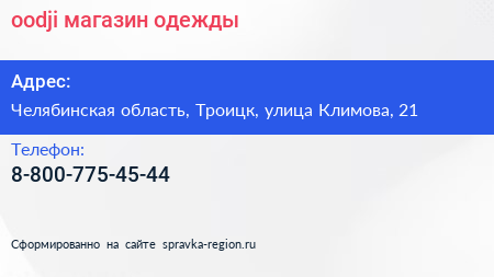 oodji, магазин одежды по адресу Челябинская область, Троицк, улица Климова, 21 в дальнейшем Организация, размещена в следующих категориях: