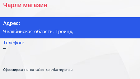 Чарли, магазин по адресу Челябинская область, Троицк, в дальнейшем Организация, размещена в следующих категориях: