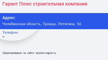 Гарант Плюс, строительная компания по адресу Челябинская область, Троицк, Летягина, 56 в дальнейшем Организация, размещена в следующих категориях: