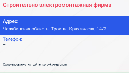 Строительно-электромонтажная фирма по адресу Челябинская область, Троицк, Крахмалева, 14/2 в дальнейшем Организация, размещена в следующих категориях: