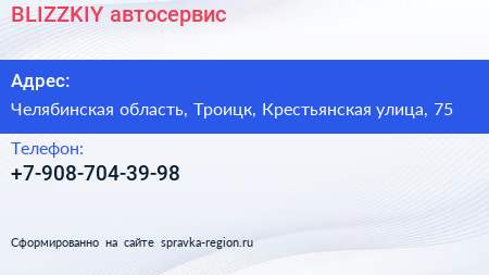 BLIZZKIY, автосервис по адресу Челябинская область, Троицк, Крестьянская улица, 75 в дальнейшем Организация, размещена в следующих категориях: