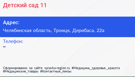 Детский сад №11 по адресу Челябинская область, Троицк, Дерибаса, 22а в дальнейшем Организация, размещена в следующих категориях: