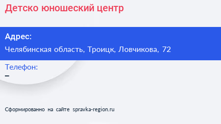 Детско-юношеский центр по адресу Челябинская область, Троицк, Ловчикова, 72 в дальнейшем Организация, размещена в следующих категориях:
