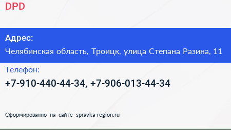 DPD по адресу Челябинская область, Троицк, улица Степана Разина, 11 в дальнейшем Организация, размещена в следующих категориях: