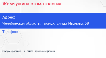 Жемчужина, стоматология по адресу Челябинская область, Троицк, улица Иванова, 58 в дальнейшем Организация, размещена в следующих категориях: