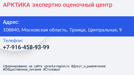 АРКТИКА, экспертно-оценочный центр по адресу 108840, Московская область, Троицк, Центральная, 9 в дальнейшем Организация, размещена в следующих категориях: