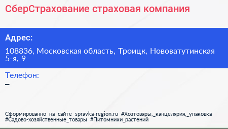 СберСтрахование, страховая компания по адресу 108836, Московская область, Троицк, Нововатутинская 5-я, 9 в дальнейшем Организация, размещена в следующих категориях: