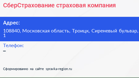 СберСтрахование, страховая компания по адресу 108840, Московская область, Троицк, Сиреневый бульвар, 1 в дальнейшем Организация, размещена в следующих категориях: