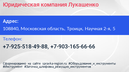 Юридическая компания Лукашенко по адресу 108840, Московская область, Троицк, Научная 2-я, 5 в дальнейшем Организация, размещена в следующих категориях:
