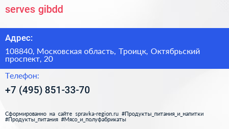 serves-gibdd по адресу 108840, Московская область, Троицк, Октябрьский проспект, 20 в дальнейшем Организация, размещена в следующих категориях: