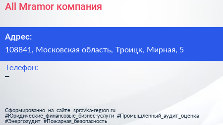 All-Mramor, компания по адресу 108841, Московская область, Троицк, Мирная, 5 в дальнейшем Организация, размещена в следующих категориях: