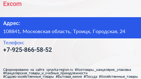 Excom по адресу 108841, Московская область, Троицк, Городская, 24 в дальнейшем Организация, размещена в следующих категориях: