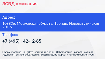 ЗСВД, компания по адресу 108836, Московская область, Троицк, Нововатутинская 2-я, 5 в дальнейшем Организация, размещена в следующих категориях: