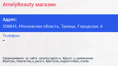 AmelyBeauty, магазин по адресу 108841, Московская область, Троицк, Городская, 6 в дальнейшем Организация, размещена в следующих категориях: