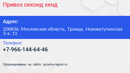 Привоз, секонд-хенд по адресу 108836, Московская область, Троицк, Нововатутинская 3-я, 11 в дальнейшем Организация, размещена в следующих категориях: