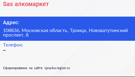 Sas, алкомаркет по адресу 108836, Московская область, Троицк, Нововатутинский проспект, 8 в дальнейшем Организация, размещена в следующих категориях:
