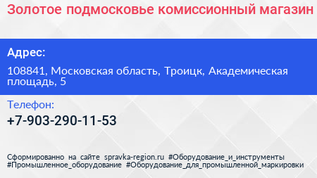 Золотое подмосковье, комиссионный магазин по адресу 108841, Московская область, Троицк, Академическая площадь, 5 в дальнейшем Организация, размещена в следующих категориях: