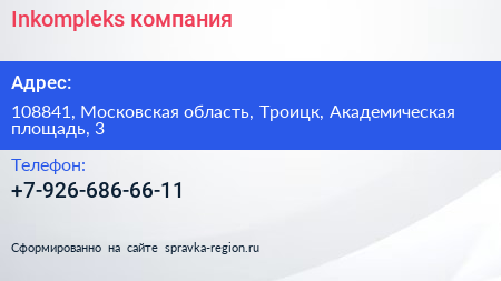 Inkompleks, компания по адресу 108841, Московская область, Троицк, Академическая площадь, 3 в дальнейшем Организация, размещена в следующих категориях:
