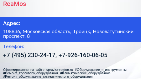ReaMos по адресу 108836, Московская область, Троицк, Нововатутинский проспект, 8 в дальнейшем Организация, размещена в следующих категориях: