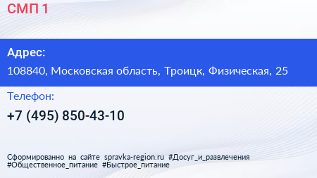 СМП-1 по адресу 108840, Московская область, Троицк, Физическая, 25 в дальнейшем Организация, размещена в следующих категориях: