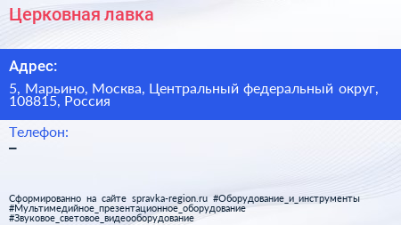 Церковная лавка по адресу 5, Марьино, Москва, Центральный федеральный округ, 108815, Россия в дальнейшем Организация, размещена в следующих категориях: