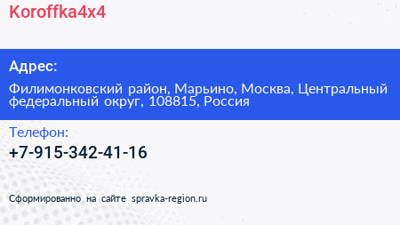 Koroffka4x4 по адресу Филимонковский район, Марьино, Москва, Центральный федеральный округ, 108815, Россия в дальнейшем Организация, размещена в следующих категориях: