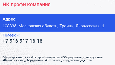 НК профи, компания по адресу 108836, Московская область, Троицк, Яковлевская, 1 в дальнейшем Организация, размещена в следующих категориях: