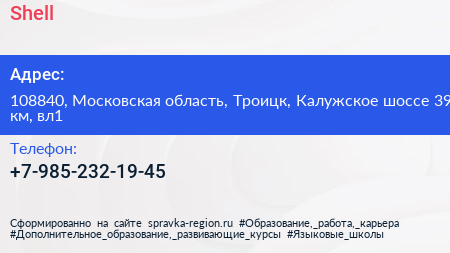 Shell по адресу 108840, Московская область, Троицк, Калужское шоссе 39 км, вл1 в дальнейшем Организация, размещена в следующих категориях: