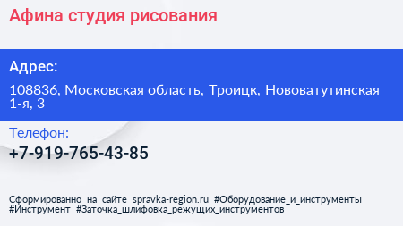 Афина, студия рисования по адресу 108836, Московская область, Троицк, Нововатутинская 1-я, 3 в дальнейшем Организация, размещена в следующих категориях: