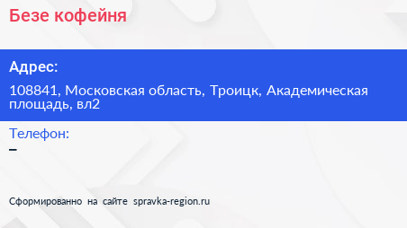 Безе, кофейня по адресу 108841, Московская область, Троицк, Академическая площадь, вл2 в дальнейшем Организация, размещена в следующих категориях: