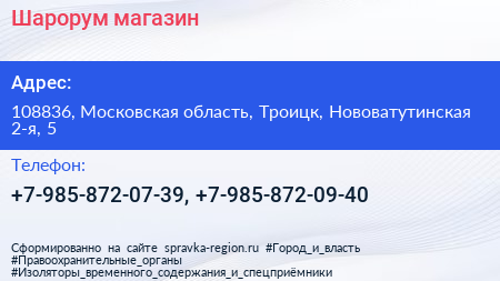 Шарорум, магазин по адресу 108836, Московская область, Троицк, Нововатутинская 2-я, 5 в дальнейшем Организация, размещена в следующих категориях: