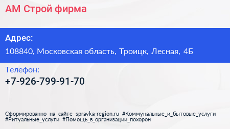 АМ-Строй, фирма по адресу 108840, Московская область, Троицк, Лесная, 4Б в дальнейшем Организация, размещена в следующих категориях: