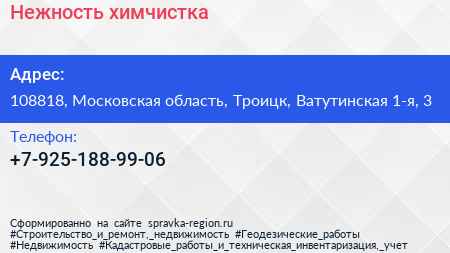 Нежность, химчистка по адресу 108818, Московская область, Троицк, Ватутинская 1-я, 3 в дальнейшем Организация, размещена в следующих категориях: