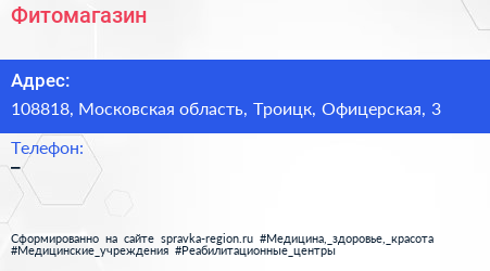 Фитомагазин по адресу 108818, Московская область, Троицк, Офицерская, 3 в дальнейшем Организация, размещена в следующих категориях: