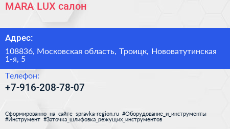 MARA LUX, салон по адресу 108836, Московская область, Троицк, Нововатутинская 1-я, 5 в дальнейшем Организация, размещена в следующих категориях: