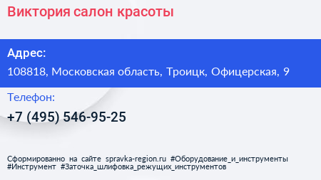 Виктория, салон красоты по адресу 108818, Московская область, Троицк, Офицерская, 9 в дальнейшем Организация, размещена в следующих категориях: